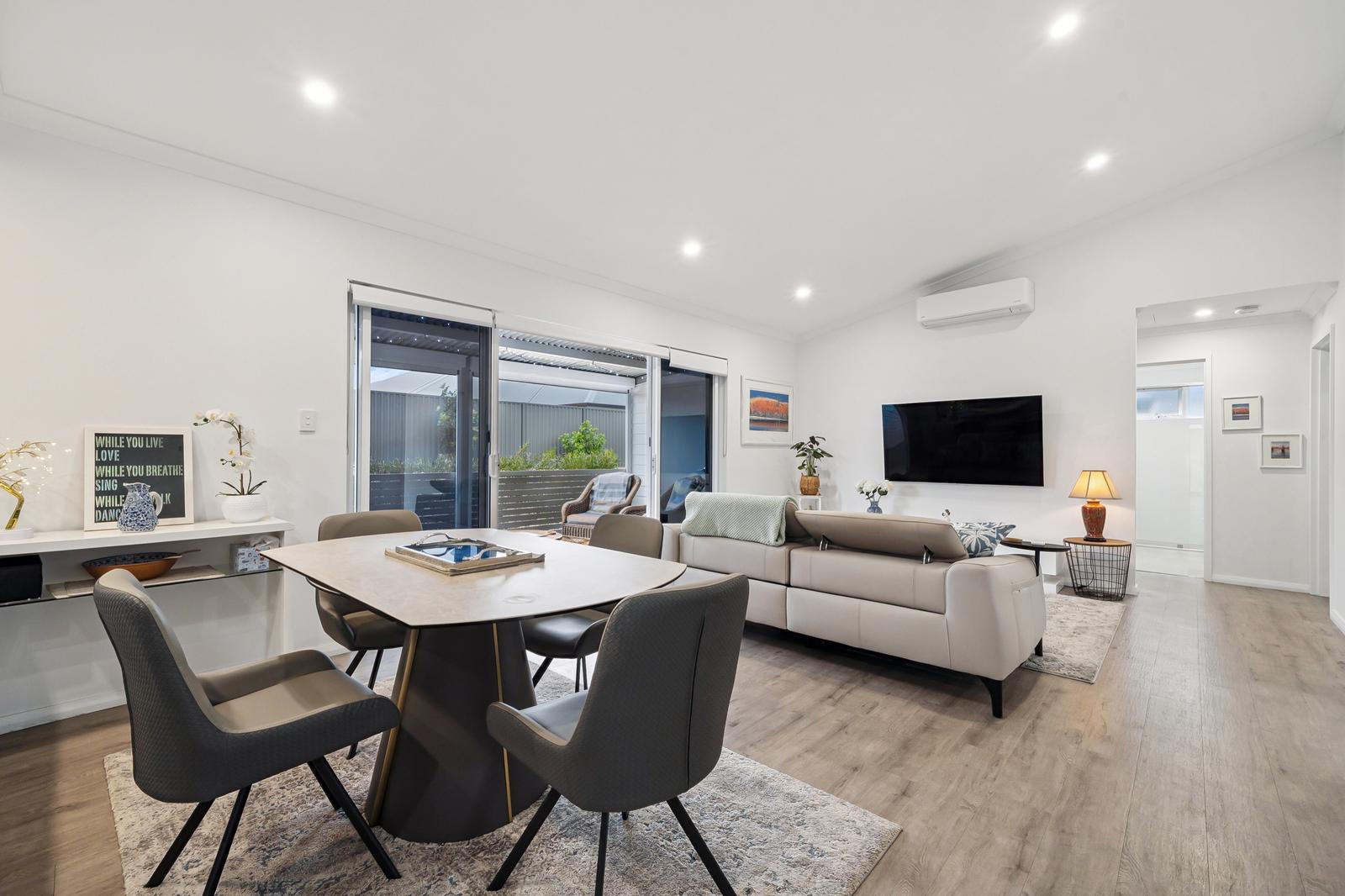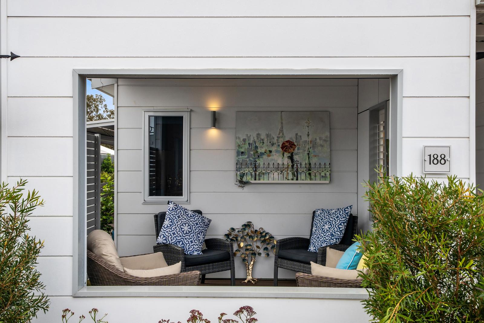 †All-inclusive Providence specifications such as stone bench tops, high-end appliances, insulation, acoustic treatment, solar & battery pack, inverter, air conditioning, Wi-Fi, and complete low maintenance and water friendly landscaping package.